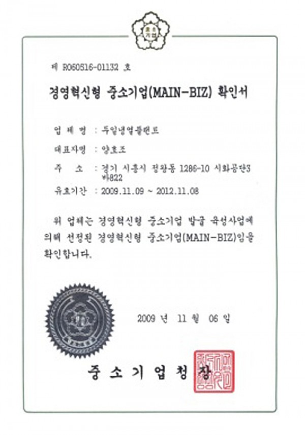 산업용 냉각기의 기술 선두기업! (주)두일냉열, 두일냉열플랜트