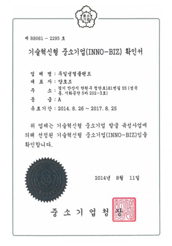 산업용 냉각기의 기술 선두기업! (주)두일냉열, 두일냉열플랜트